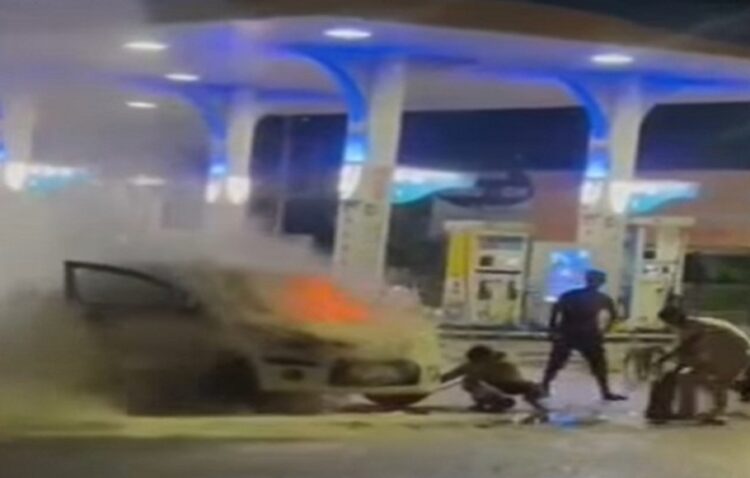 बिलासपुर के घुमारवीं में एक बड़ा हादसा होते-होते टल गया। हुआ यूं कि जब कार पेट्रोल पंप से तेल भरवा कर निकली तो अचानक उसमें आग लग गई। कार में सवार लोग गाड़ी में तेल भरवाने पहुंचे थे। बताया जा रहा है कि कार में तकनीकी खराबी के कारण अचानक आग लग गई, और देखते ही देखते आग ने विकराल रूप ले लिया।