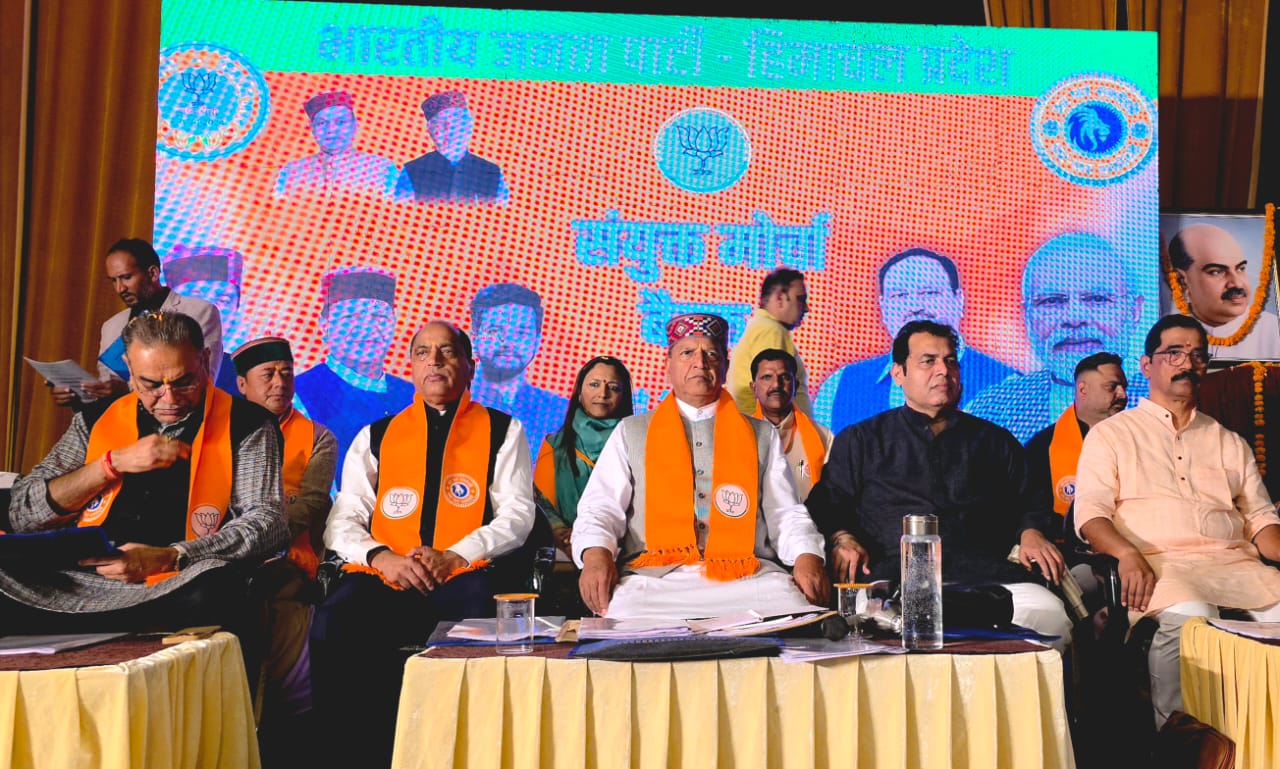 भाजपा प्रदेश अध्यक्ष डॉ बिंदल ने कांग्रेस पार्टी पर प्रहार करते हुए कहा कि 3 साल पहले झूठ, फरेब और धोखे का एक आवरण ओढ़कर सत्ता में कांग्रेस पार्टी आई और तीन साल से उन्होंने बेरोजगार युवकों, हमारी बहनों माताओं को बुरी तरह से त्रस्त किया एवं ठगा। प्रदेश की 15 लाख बेरोजगार युवा जिसको 1 लाख सरकारी नौकरी देने का वायदा इन्होंने पहली कैबिनेट में किया था और 5 साल में 5 लाख रोजगार देने की बात की थी, आज एक भी व्यक्ति को रोजगार नहीं मिला। उन्होंने कहा कि डेढ़ लाख पदों को समाप्ति कर एक नया कीर्तिमान स्थापित किया गया। 2000 से अधिक संस्थानों को बंद करने का काम इस सरकार ने खूब जोर से किया। यानी रोजगार के अवसरों को पूरी तरह से समाप्त किया, 28 लाख बहनें आज भी 1500 महीना की इंतजार कर रही। बड़ी मात्रा में कर्ज लेने के बाद भी प्रदेश का विकास पूरी तरह से ठप्प हो गया, सारी सड़कें टूटी, पेयजल योजनाएं टूटी हुई है। आपदा का प्रबंधन जिस और गलत तरीके से किया गया, हजारों परिवार आज भी बेघर होकर के बैठे हुए हैं। आपदा प्रबंधन के अंदर भाई भतीजावाद सरकार के संचालन में भाई भतीजावाद यूं कहा जाए कि यह सरकार आज तक के इतिहास की सबसे निकम्मी सरकार है। इस भ्रष्ट सरकार को पूरी तरह उखाड़ फेंकने के लिए भाजपा इन दो दिन की कार्यशाला में अपने आप को चाक चौबंद करने की तैयारी कर रही है।