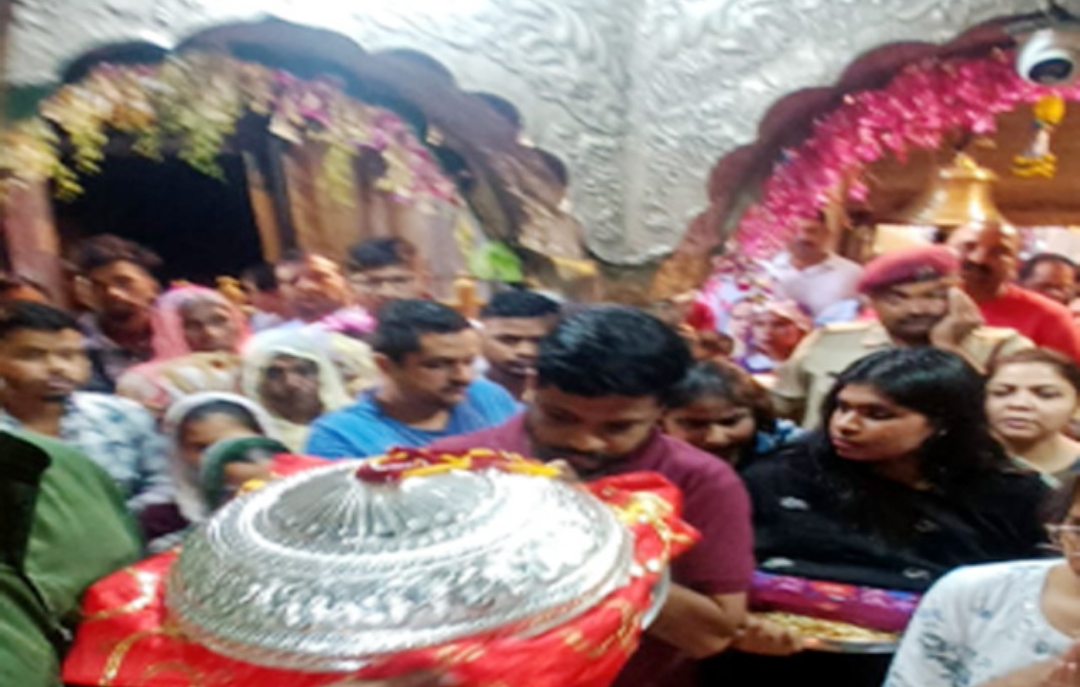 धार्मिक शक्तिपीठ चिंतपूर्णी में चल रहे शारदीय अश्विन नवरात्रों के पांचवें दिन पंजाब के एक श्रद्धालु ने मां की पावन पिंडी पर एक चांदी का छत्र अर्पित किया। मंदिर पुजारी रोहन कालिया द्वारा लुधियाना पंजाब से आए श्रद्धालु की विधि पूर्वक मंत्र उच्चारण के साथ पूजा-अर्चना करवाई गई। पुजारी रोहन कालिया ने बताया कि माता के सेवक पुनीत मित्तल, दीपक मित्तल व उनके पूरे परिवार द्वारा शुद्ध चांदी का छत्र जिसका वजन लगभग डेढ़ किलो के करीब है, माता जी को अर्पित किया गया। यह छत्र आधुनिक कारीगरी से युक्त जिसके चारों तरफ घंटियां लगी हुई हैं।