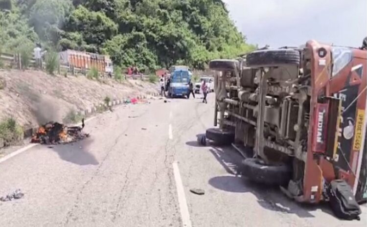 हिमाचल प्रदेश में बढ़ते हादसों के बीच एक बेहद दर्दनाक सड़क हादसा हुआ है। इस हादसे में दो लोगों की मौके पर ही मौत हो गई है। यह हादसा हिमाचल के बिलासपुर जिला में हुआ है। हादसे में एक स्कूटी और ट्रक के बीच जोरदार टक्कर हो गई। हादसा इतना भयंकर था कि टक्कर के बाद जहां स्कूटी में आग लग गई, वहीं ट्रक बीच सड़क पलट गया।