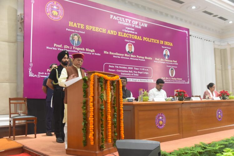 राज्यपाल शिव प्रताप शुक्ल ने अभिव्यक्ति की स्वतंत्रता के अधिकार का जवाबदेही के साथ इस्तेमाल करने के महत्त्व पर बल देते हुए कहा कि शब्दों में पवित्रता और शक्ति होती है। राज्यपाल आज बतौर मुख्यातिथि दिल्ली विश्वविद्यालय के विधि संकाय द्वारा आयोजित ‘भारत में द्वेषपूर्ण भाषण और चुनाव राजनीति’ विषय पर संगोष्ठी को संबोधित कर रहे थे।
