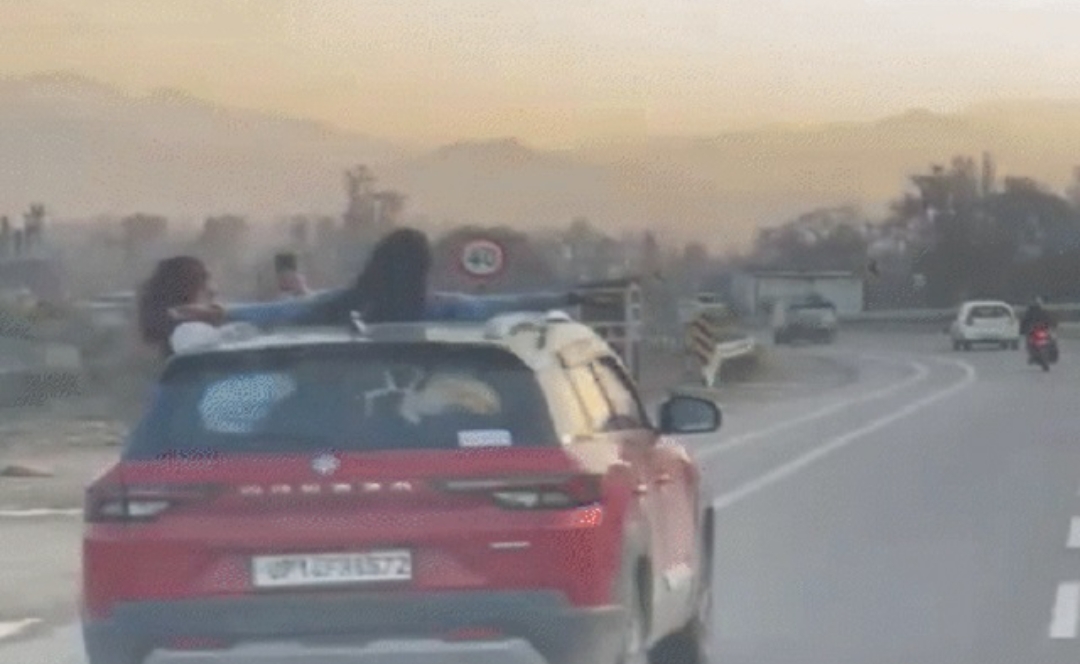 जानकारी के मुताबिक, यह मामला बीते बुधवार शाम का है। उत्तर प्रदेश के पंजीकरण नंबर UP-14-FH-8572 वाली एक कार मनाली से चंडीगढ़ की ओर जा रही थी। कार के पीछे चल रहे एक जागरूक नागरिक ने देखा कि गाड़ी में सवार दो युवतियां सनरूफ और खिड़कियों से बाहर निकलकर खतरनाक तरीके से चिल्ला रही थीं। नागरिक ने इस खतरनाक स्टंट का वीडियो बना लिया और तुरंत स्थानीय पुलिस के साथ साझा किया। जैसे ही पुलिस को वीडियो मिला, सुंदरनगर पुलिस अलर्ट हो गई। पुंघ नामक स्थान पर विशेष नाकाबंदी की गई और संदिग्ध वाहन को रुकवा लिया गया। कार को मोहम्मद उमर नामक व्यक्ति चला रहा था। पुलिस ने खतरनाक तरीके से वाहन चलाने और यातायात नियमों की धज्जियां उड़ाने के जुर्म में 3500 रुपये का चालान काटकर पर्यटकों के हाथ में थमा दिया।