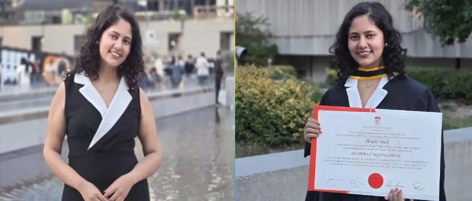 दिल्ली में एक निजी संस्थान में एक वर्ष तक कार्यरत रहने के साथ-साथ आरुषि ने विदेश में पढ़ाई के अपने सपने को साकार करने की दिशा में लगातार प्रयास किए। जून 2024 में उन्हें कनाडा की प्रतिष्ठित मैकगिल यूनिवर्सिटी में वजीफे के साथ दाखिला मिला और अब उन्होंने सफलतापूर्वक मास्टर्स की डिग्री प्राप्त कर ली है।