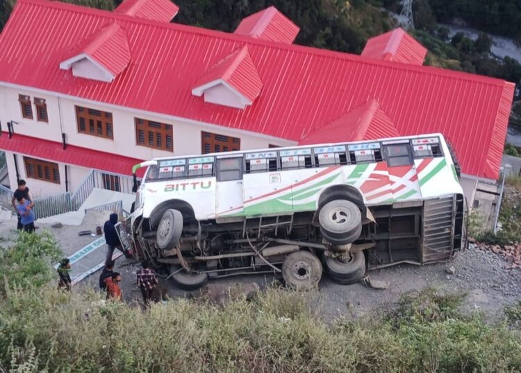 हिमाचल में निजी बस अनियंत्रित होकर लुढ़की, मचा हड़कंप