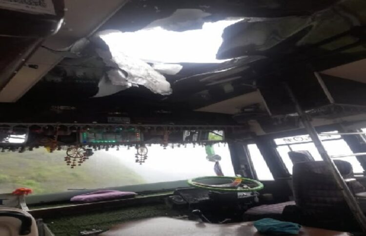 चलती बस पर पहाड़ी से गिरे पत्थर
