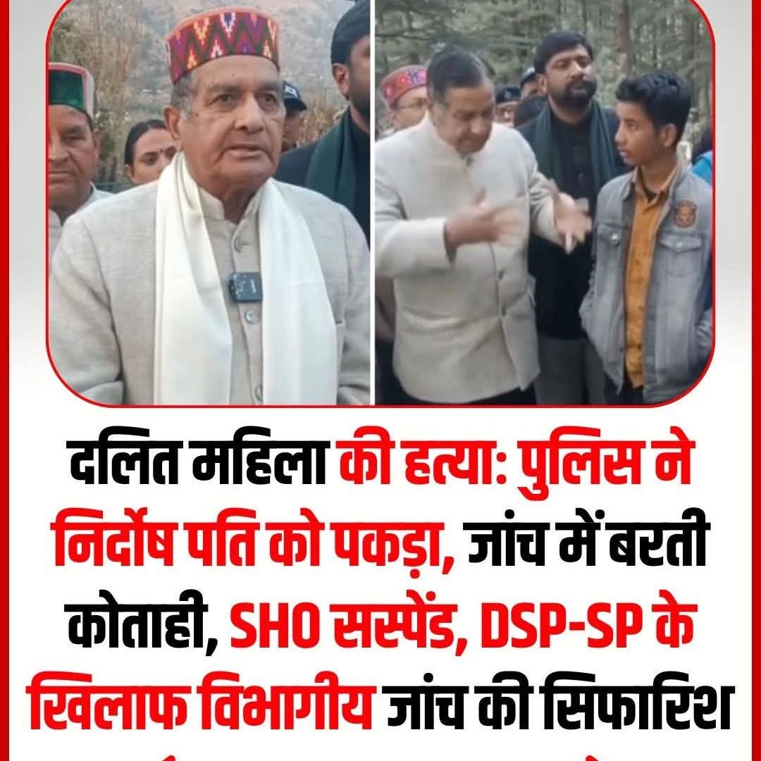 आयोग के अध्यक्ष कुलदीप धीमान ने कहा कि इस मामले में जो भी व्यक्ति दोषी पाया जाएगा, चाहे फिर वो किसी पद पर क्यों ने हो, उसके खिलाफ कड़ी कार्रवाई की जाएगी. उन्होंने पुलिस प्रशासन पर आरोप लगाते हुए कहा कि पुलिस ने सिर्फ केस तैयार करने में बल्कि सबूत जुटाने में और जांच प्रक्रिया में भी गंभीर लापरवाही बरती है. अध्यक्ष ने इस घटना को अत्यंत दुखद और शर्मनाक बताते हुए कहा कि सैंज क्षेत्र में अनुसूचित जाति की महिला के साथ घटित यह घटना मानवता को झकझोर देने वाली है.