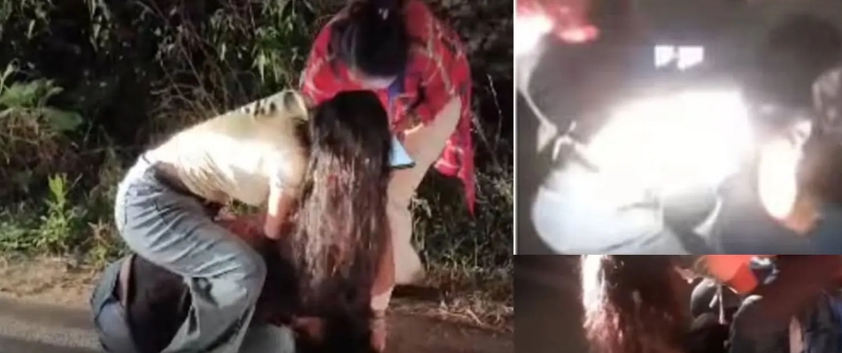 हिमाचल प्रदेश के कुल्लू जिला से एक चौंकाने वाली घटना सामने आई है। जिला के ब्रो पुलिस थाना क्षेत्र में एक युवती के साथ तीन लोगों द्वारा बेरहमी से मारपीट किए जाने का वीडियो वायरल हो रहा है। वीडियो में एक युवती सड़क पर गिरी हुई है और एक पुरुष उस पर बार.बार लातों से वार कर रहा है, जबकि दो महिलाएं जो आपस में मां बेटी बताई जा रही हैं लड़की को थप्पड़ मारती और बाल खींचती नजर आ रही हैं। वीडियो में मारपीट करने वाले अभद्र भाषा का भी प्रयोग कर रहे हैं। लड़की से मारपीट करने वाले महिला और पुरुष शिक्षक दंपत्ति बताए जा रहे हैं।