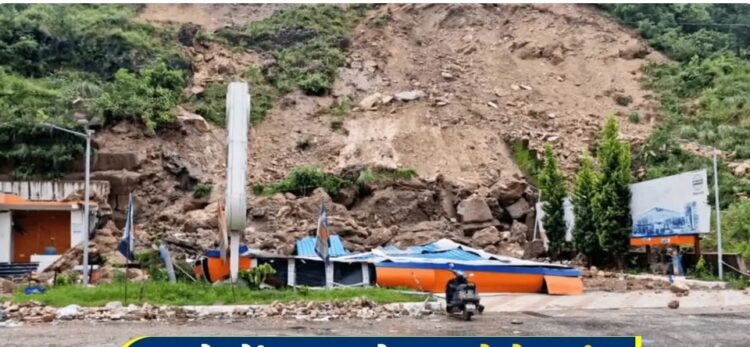 पहाड़ दरकने से मलबे में दफन हुआ पेट्राल पंप
