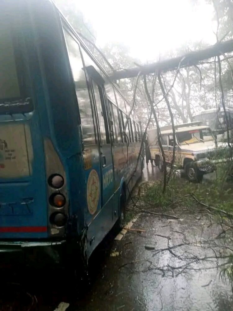 शिमला में एक बड़ा हादसा टल गया। संजौली और छोटा शिमला के बीच सड़क पर हिमाचल पथ परिवहन निगम (HRTC) की एक बस पर अचानक एक बड़ा पेड़ गिर गया। यह घटना तब हुई जब बस संजौली से छोटा शिमला की ओर जा रही थी। बस में यात्री सवार थे, लेकिन गनीमत रही कि किसी को कोई गंभीर चोट नहीं आई।