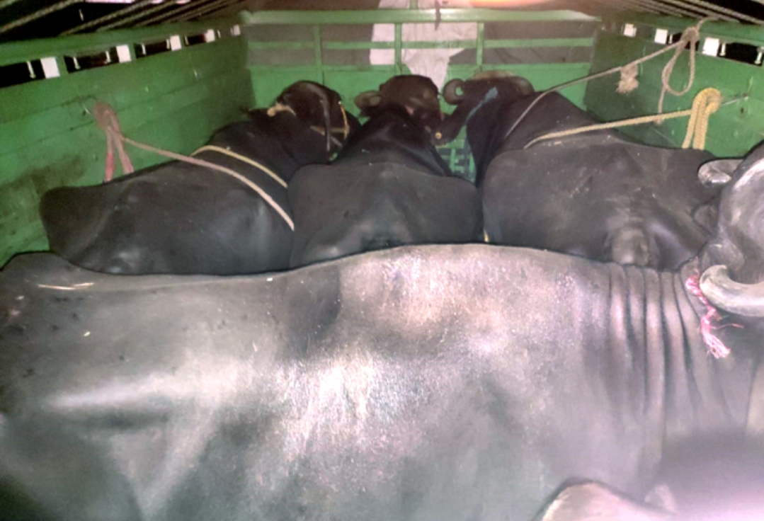 जानकारी के अनुसार, बैरी दडोला निवासी आकाश चंदेल और उनके साथी पंकज पठानिया देर रात फोरलेन से गुजर रहे थे। इसी दौरान उन्होंने एक पिकअप (यूपी 11डीटी-7794) को देखा, जिसमें 5-6 भैंसों को बेहद दयनीय स्थिति में भरा गया था। जब उन्होंने चालक से पूछताछ की, तो उसने बताया कि इसी तरह की तीन और गाड़ियां भी उसके पीछे आ रही हैं।