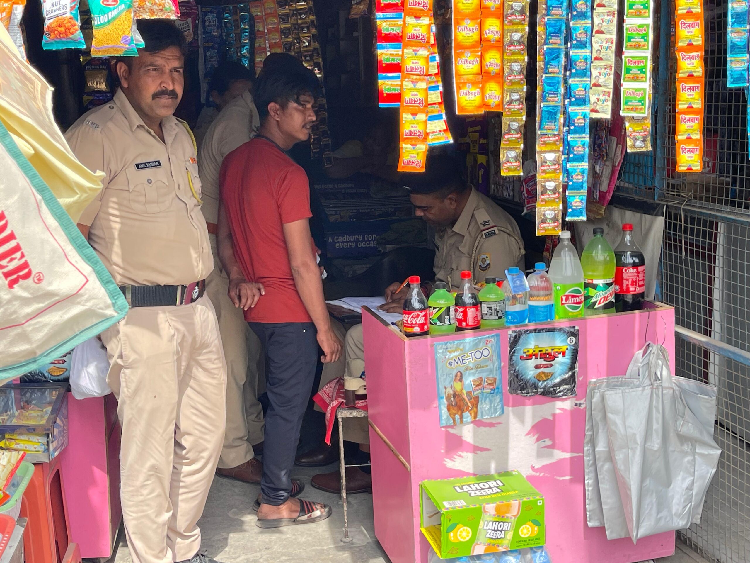 13एनएचएनकपिल01 : पांवटा साहिब : दुकान में जांच करते पुलिस कर्मी (कपिल)