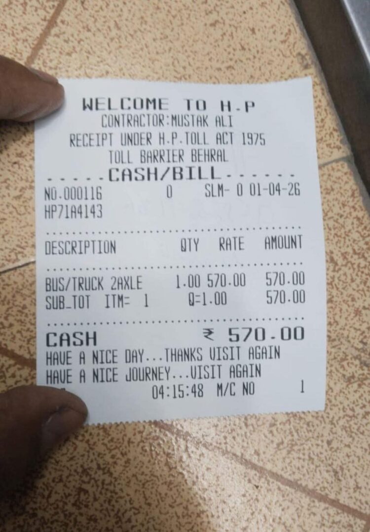 लेकिन दूसरी ओर, पांवटा साहिब के बहराल बैरियर पर 6 चक्का ट्रकों से ₹570 की पर्ची काटे जाने की शिकायतें सामने आ रही हैं। ट्रक ऑपरेटरों और यूनियनों का कहना है कि यदि सरकार द्वारा घोषित दर ₹320 है, तो मौके पर ₹570 की वसूली क्यों की जा रही है।