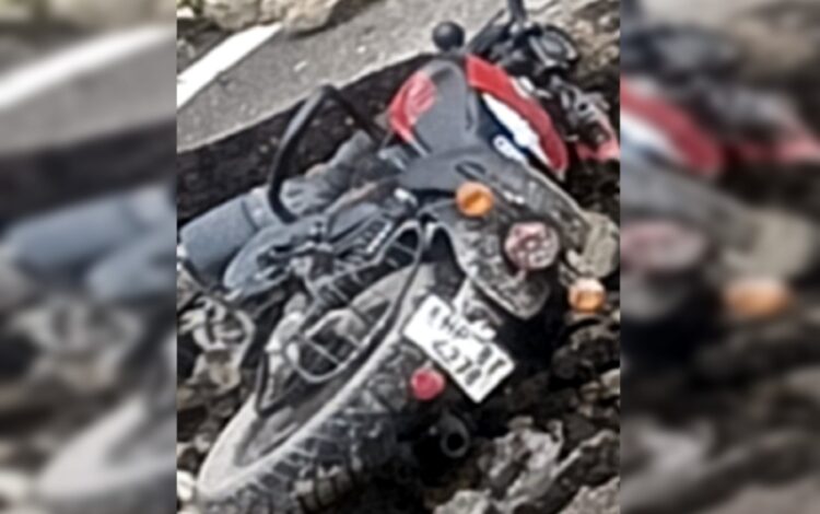 पठानकोट-चम्बा-भरमौर एनएच पर बैली के समीप एक बाइक गहरी खाई में जा गिरी। हादसे में बाइक सवार 2 युवक जख्मी हुए हैं। जानकारी के अनुसार वीरवार सुबह 2 युवक बाइक पर पठानकोट से सलूणी के लिए रवाना हुए और जब वे बैली के समीप पहुंचे तो सामने बारिश के कारण कुछ दिन पहले क्षतिग्रस्त हुई सड़क पर धुंध होने के कारण अंदाजा नहीं लग पाया, जिसके कारण दाेनाें युवक बाइक सहित खाई में जा गिरे। गनीमत रही कि इस हादसे में दोनों युवकों को मामूली चोटें आईं।