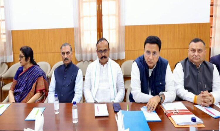 नई दिल्ली में शुक्रवार को कांग्रेस की एक अहम रणनीतिक बैठक हुई, जिसमें मुख्य रूप से हिमाचल प्रदेश की राजनीतिक स्थिति, संगठनात्मक ढांचे की मजबूती, केंद्र द्वारा आरडीजी (राजस्व घाटा अनुदान) बंद किए जाने और राज्यसभा चुनाव सहित अन्य मुद्दों पर विस्तृत चर्चा की गई। बैठक की अध्यक्षता कांग्रेस के राष्ट्रीय अध्यक्ष मल्लिकार्जुन खरगे ने की, जबकि लोकसभा में नेता प्रतिपक्ष राहुल गांधी विशेष रूप से मौजूद रहे। बैठक में राष्ट्रीय महासचिव संगठन केसी वेणुगोपाल, मुख्यमंत्री ठाकुर सुखविंदर सिंह सुक्खू, उपमुख्यमंत्री मुकेश अग्निहोत्री, मंत्रिमंडल के सदस्य, प्रदेश कांग्रेस अध्यक्ष विनय कुमार तथा प्रदेश प्रभारी रजनी पाटिल और पूर्व केंद्रीय मंत्री आनंद शर्मा सहित अन्य वरिष्ठ नेता शामिल हुए।