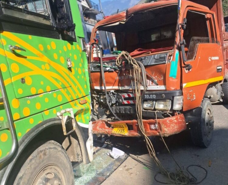 शिमला के रामपुर उपमंडल के नोगली में रफ्तार का कहर देखने को मिला है। यहाँ एक निजी बस और एक टिप्पर की आमने-सामने की जोरदार टक्कर हो गई, जिससे पूरा इलाका थर्रा उठा। इस भयावह हादसे में छह बस यात्री घायल हुए हैं। सबसे अधिक चोटें बस चालक को लगी हैं, जिसकी हालत चिंताजनक बनी हुई है।