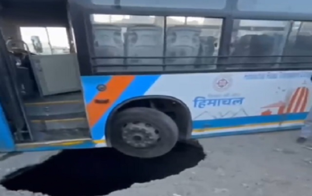 शिमला में चलती HRTC बस के नीचे से धंसी सड़क, स्कूली बच्ची गड्ढे में गिरी