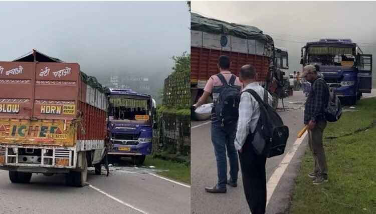 जिला सिरमौर के नाहन कुमारहट्टी शिमला नेशनल हाईवे 907 ए पर शनिवार शाम एक निजी बस व ट्रक की जोरदार टक्कर हो गई। बस और टक्कर को काफी नुकसान पहुंचा है। वहीं ट्रक के ड्राइवर को काफी चोट लगने से घायल हो गया है। जबकि बस में सवार चार-पांच महिलाओं को हल्की चोट लगी है।