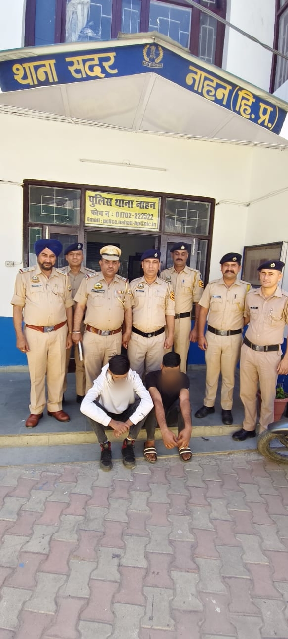 डिटेक्शन सेल नाहन ने नशे के खिलाफ कार्रवाई करते हुए नाहन-कालाअंब रोड पर कंगनीवाला नेचर पार्क के पास स्कूटी सवार दो युवकों से 6.80 ग्राम हेरोइन (चिट्टा) बरामद की है। दिनांक 17-04-2026 को नाका व गश्त के दौरान स्कूटी नंबर HP71A6506 को रोका गया। तलाशी लेने पर स्कूटी सवार दोनों युवकों के कब्जे से 6.80 ग्राम हेरोइन/चिट्टा बरामद किया गया है। गिरफ्तार आरोपियों की पहचान शोएब खान (उम्र 28 वर्ष) पुत्र मोहम्मद रफी, निवासी मकान नं0 1111/4, अमरपुर मोहल्ला नाहन, तथा अभिनव कश्यप (उम्र 25 वर्ष) पुत्र राज कुमार, निवासी मकान नं0 856/3, शिमला रोड, हाथी की कब्र नाहन, के रूप में हुई है। इस संबंध में थाना सदर नाहन में एनडीपीएस एक्ट की धारा 21, 29 के तहत प्राथमिकी दर्ज कर ली गई है। मामले की जांच में पता लगाया जा रहा है कि यह उपरोक्त हेरोईन/चिट्टा कहां से लाए थे और किसे बेचने की फिराक में थे ताकि मामले में बेकवार्ड/फॉरवार्ड लिंकेज का पता लगाकर नशे के इस अवैध धन्धे में संलिप्त अन्य आरोपियों को भी पकड़ा जा सके।