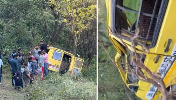 स्कूल बस में 15 छात्र-छात्राएं व शिक्षक सवार थे। बताया जा रहा है पांच बच्चों को ज्यादा चोट आई है। घायल बच्चों को सरकारी अस्पताल सोलन लाया गया है।