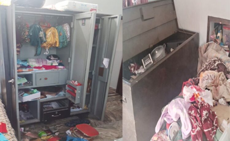 देर रात चोरों ने उनके स्टोर का ताला तोड़कर अंदर रखी पेटी और अलमारी खंगाल डाली। चोरों ने लॉकर में रखे पर्स से सोने की अंगूठी, 5,000 रुपए और गुल्लक तोड़कर करीब 18,000 रुपए चोरी कर लिए। बताया जा रहा है कि घटना के समय चांद देवी सहित घर के सभी सदस्य घर में ही सोए हुए थे, परंतु चोर बड़ी चालाकी से छत के ऊपर से मौंटी का दरवाजा तोड़कर घर में घुस गए और वारदात को अंजाम दिया।