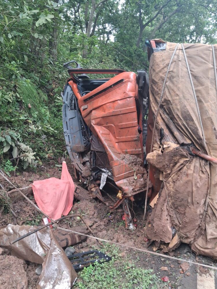 पांवटा साहिब नाहन सड़क पर ट्रक पलटा चालक की मौत , क्लीनर गंभीर रूप से घायल