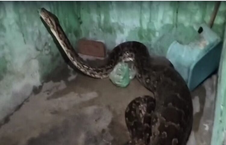 जानकारी के अनुसार, संध्या देवी नाम की महिला अपने पोते योगेश के साथ सुबह करीब 5 बजे अपने घर के बरामदे में सो रही थीं। बरामदे के एक कोने में बने बाथरूम के पास उनकी पालतू कुतिया बैठी हुई थी। तभी अचानक एक बड़ा अजगर वहां आ पहुंचा और उसने तुरंत कुतिया पर हमला कर दिया। अजगर ने उसे अपनी गिरफ्त में ले लिया और निगलने लगा।